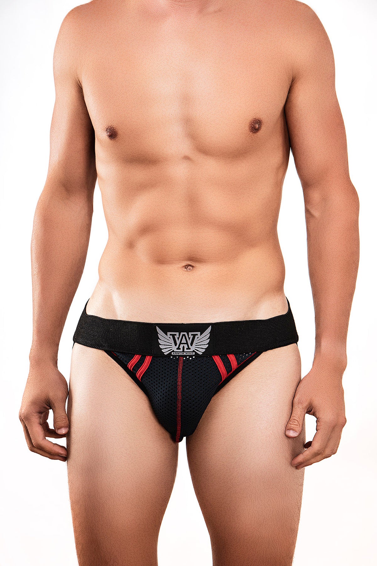 Unleash your inner daredevil with our QuarterBack jockstrap, perfect for daily wear and demanding workouts. Featuring a 2-inch honeycomb waistband for comfort and a moisture-wicking mesh fabric pouch, this jockstrap will keep you cool and dry as you conquer challenges and push your boundaries!